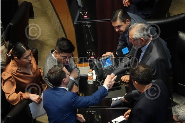 CIUDAD DE MÉXICO, 24ABRIL2025.- Los senadores Ricardo Anaya y Adán Augusto se saludaron durante la Sesión Ordinaria en el Senado de la República. FOTO: GRACIELA LÓPEZ/CUARTOSCURO.COM