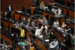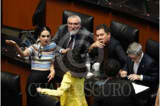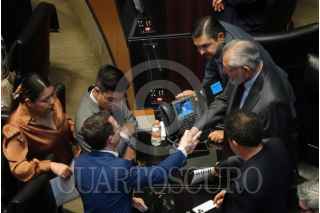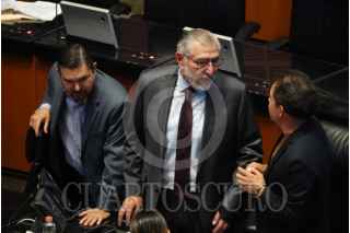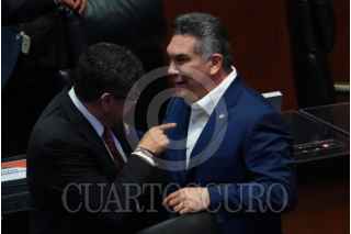 CIUDAD DE MÉXICO, 24ABRIL2025.- Los senadores Adán Augusto e Ignacio Mier conversaron durante la Sesión Ordinaria en el Senado de la República. FOTO: GRACIELA LÓPEZ/CUARTOSCURO.COM