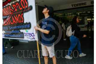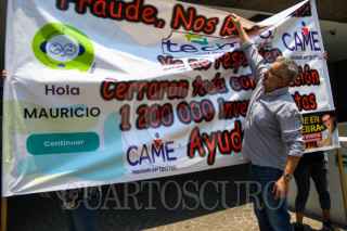 CIUDAD DE MÉXICO. 24ABRIL2925.- Un grupo de personas defraudadas por la empresa Consejo de Asistencia al Microemprendedor (Came), así como, algunos trabajadores, se manifestaron en las afueras de las oficinas de la Comisión Bancaria y de Valores, para denunciar una estafa a las de 1,2 de gente a nivel nacional. Denuncian que la CONDUSEF y el SAT se han negado a atenderlos. Denunciaron que desmontaron sus oficinas y bajaron la aplicación App. Exigieron la devolución de sus ahorros FOTO: VICTORIA VALTIERRA/CUARTOSCURO.COM