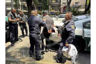 CIUDAD DE MÉXICO, 24ABRIL2025.- Dos hombres fueron detenidos tras un asalto a una joyería en el centro comercial Parque Delta, en la Ciudad de México. La Secretaría de Seguridad Ciudadana (SSC) informó que los presuntos responsables fueron aprehendidos en el establecimiento de la plaza comercial. Los presuntos llegaron a la joyería y amenazaron a la encargada con una réplica de arma de fuego para que les dieran varios relojes de alta gama. Tras darse a la fuga policías capitalinos lograron capturarlos, no se registraron lesionados. FOTO: CUARTOSCURO.COM