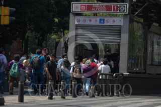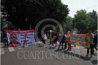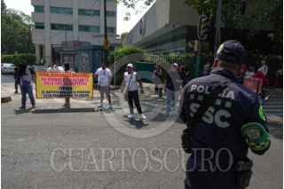 CIUDAD DE MÉXICO 25ABRIL2025.- Un grupo de personas realizaron un bloqueo en ambos carriles de la Avenida Insurgentes a la altura del Edificio de Comunicaciones y Transporte, esto para exigir el cambio los servidores públicos que encabezan los Autotransportes Federales. FOTO: ROGELIO MORALES CUARTOSCURO.COM