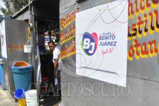 CIUDAD DE MÉXICO, 25ABRIL2025.- Logos de la alcaldía Benito Juárez comenzaron a ser colocados en diversos puestos comerciantes (con rótulos) que se encuentran en las inmediaciones de la avenida Tlalpan. Las autoridades de dicha alcaldía han negado que se trate de alguna imposición. FOTO: MARIO JASSO/CUARTOSCURO.COM