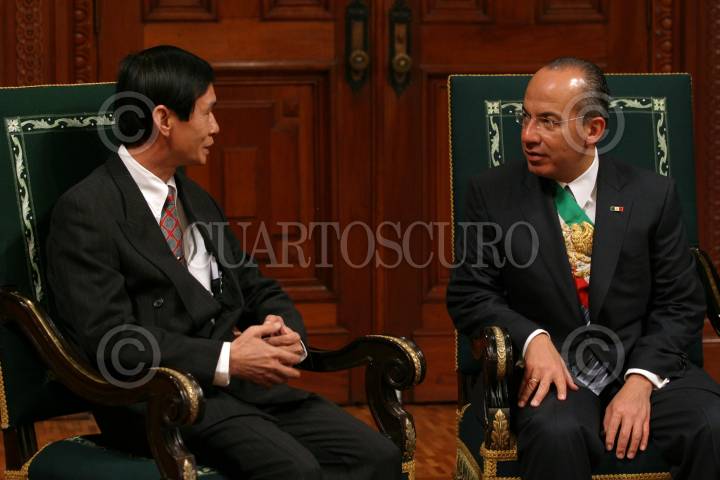 MÉXICO, D.F., 24OCTUBRE2007.- Hunaina Sultan Ahmed Al-Mughairy, entregó sus cartas credenciales como embajador del Sultanato de Oman en nuestro país a Felipe Calderón Hinojosa, Presidente de México, en una ceremonia realizada en el Palacio Nacional. FOTO: MOISÉS PABLO/CUARTOSCURO.COM