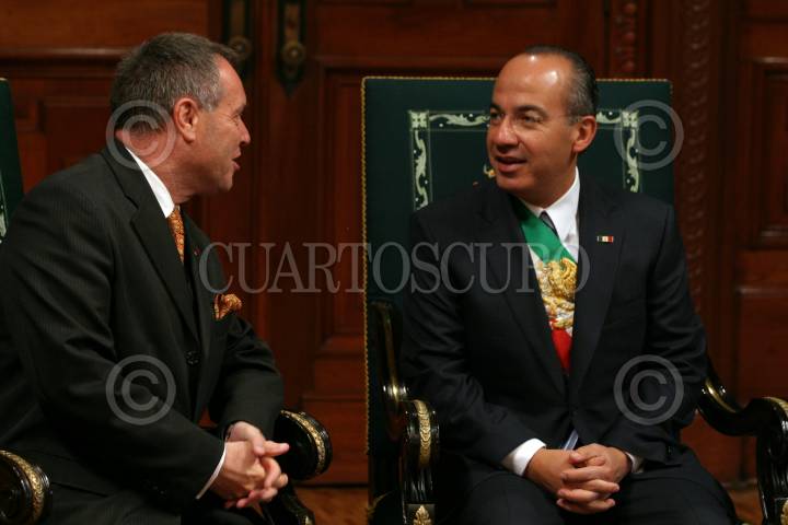 MÉXICO, D.F., 24OCTUBRE2007.- Hunaina Sultan Ahmed Al-Mughairy, entregó sus cartas credenciales como embajador del Sultanato de Oman en nuestro país a Felipe Calderón Hinojosa, Presidente de México, en una ceremonia realizada en el Palacio Nacional. FOTO: MOISÉS PABLO/CUARTOSCURO.COM