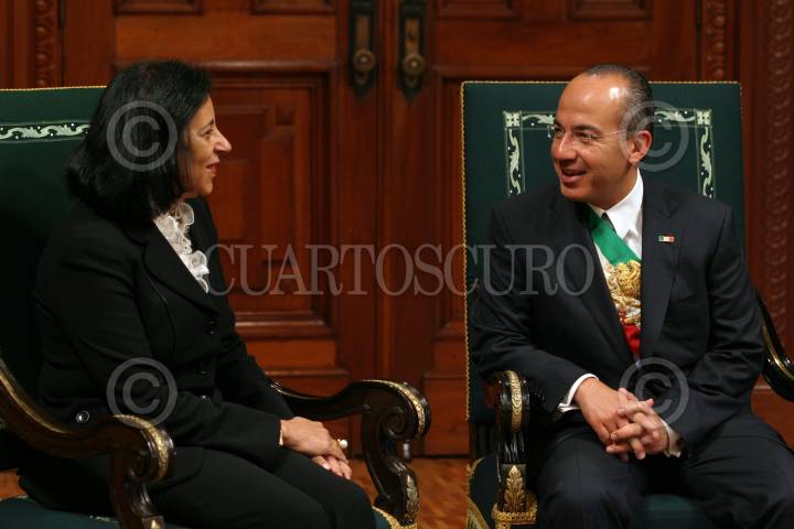 MÉXICO, D.F., 24OCTUBRE2007.- Hunaina Sultan Ahmed Al-Mughairy, entregó sus cartas credenciales como embajador del Sultanato de Oman en nuestro país a Felipe Calderón Hinojosa, Presidente de México, en una ceremonia realizada en el Palacio Nacional. FOTO: MOISÉS PABLO/CUARTOSCURO.COM