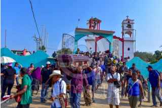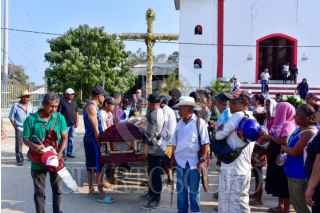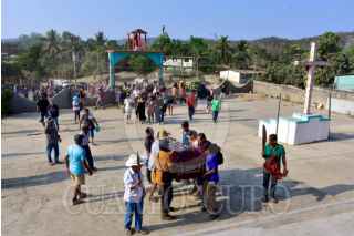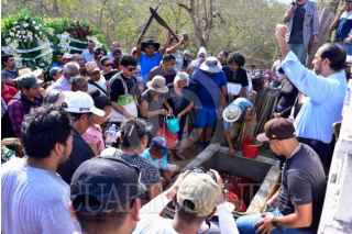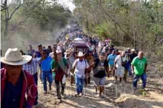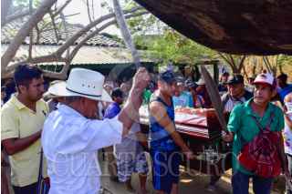 ACAPULCO, GUERRERO, 27ABRIL2025.- El luchador social líder del Consejo de Ejidos Opositores a la Presa La Parota (Cecop) y de la asociación Turisteros Unidos en Defensa y Rescate de la Playa Icacos (Tuderpi), Marco Antonio Suastegui Muñoz, fue sepultado en la comunidad de Cacahuetepec en la zona rural de Acapulco, luego de que falleciera el día viernes tras varios días de estar hospitalizado por las heridas que sufrió tras recibir un atentado armado en la playa Icacos de Acapulco. FOTO: CARLOS ALBERTO CARBAJAL/CUARTOSCURO.COM