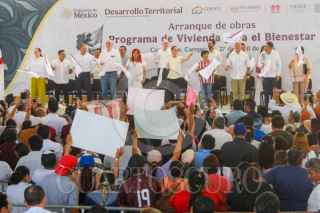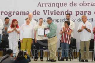 CAMPECHE, CAMPECHE, 27ABRIL2025.- Durante su gira por Campeche, la presidenta Claudia Sheinbaum Pardo encabezó el inicio de las obras del Programa de Vivienda para el Bienestar en la Unidad Habitacional Siglo XXI. En el evento estuvo acompañada por la gobernadora de Campeche, Layda Sansores San Román; el director general del Infonavit, Octavio Oropeza; y la secretaria de Desarrollo Urbano, Edna Vega Rangel. FOTO: MICHAEL BALAM/CUARTOSCURO.COM