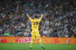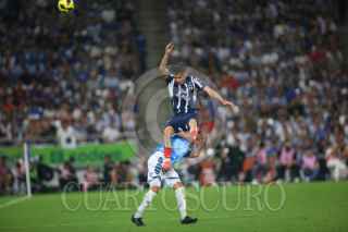 GUADALUPE, NUEVO LEÓN, 27ABRIL2025.- Gerardo Arteaga de los Rayados del Monterrey, se disputa el balón con Jorge Berlanga del Pachuca, en el estadio BBVA, partido correspondiente al Play In 1 de la Clausura 2025. Marcador final: Monterrey: 1 - Pachuca: 2 FOTO: GABRIELA PÉREZ MONTIEL / CUARTOSCURO.COM
