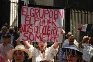 CIUDAD DE MÉXICO, 28ABRIL2025.- Decenas de personas se manifestaron para exigir la libertad de expresión, debido a la propuesta de la Ley de Telecom, propuesta por Claudia Sheinbaum, presidenta de México. La protesta se realizó afuera de las inmediaciones del Senado de la República. FOTO: GRACIELA LÓPEZ/CUARTOSCURO.COM
