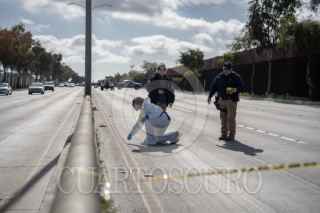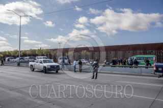 TIJUANA, BAJA CALIFORNIA 28ABRIL2025.- Sobre la Avenida Aeropuerto con dirección a la colonia Libertad, a metros del Aeropuerto Internacional de Tijuana, se registró una agresión armada que dejo el saldo de un hombre y una mujer sin vida, quienes se encontraban a bordo de un vehículo pick up Ford Lobo de color gris. Las unidades de emergencia arribaron al lugar de los hechos y localizaron a un hombre y una mujer lesionados por impactos de arma de fuego al interior del vehículo. Paramédicos de la Cruz Roja llegaron para brindarle los primeros auxilios a las víctimas, sin embargo, fueron declarados sin vida en el lugar. Según testigos, escucharon disparos a la altura del aeropuerto y visualizaron que los presuntos responsables viajaban a bordo de un vehículo tipo sedan de color blanco. En la zona se realizó un fuerte operativo policíaco, sin embargo, no hay registró de personas detenidas relacionadas a los hechos. Agentes de la Fiscalía y Servicios Periciales quedaron a cargo de la escena para realizar las investigaciones correspondientes. FOTO: OMAR MARTÍNEZ / CUARTOSCURO.COM