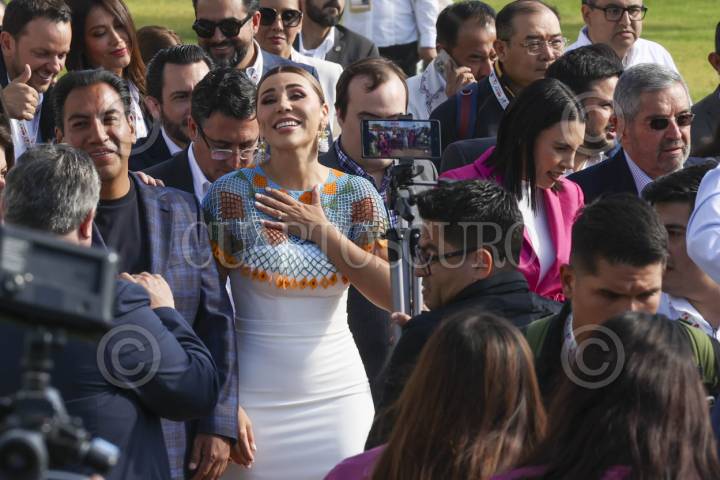 ROSARITO, BAJA CALIFORNIA, 28ABRIL2025.- Marina del Pilar Ávila, gobernadora de Baja California; y Josefina Rodriguez Zamora, secretaria de Turismo Federal, dieron arranque al Tianguis Turístico 2025, el cuál según afirman superará al de ediciones pasadas ya que en esta ocasión esta ocasión es binacional. Durante el acto protocolario, personas de un pueblo originario de Baja California hicieron una ceremonia ancestral, ya que también como aseguraron en esta edición se está impulsando el turismo comunitario. Al rato acudieron varios gobernadores y el secretario de Relaciones Exteriores, Juan Ramón de la Fuente. Ahí se anunció que la próxima edición retornará a Guerrero, gesto que fue agradecido por Evelyn Salgado, gobernadora de la entidad. FOTO: MOISÉS PABLO/CUARTOSCURO.COM
