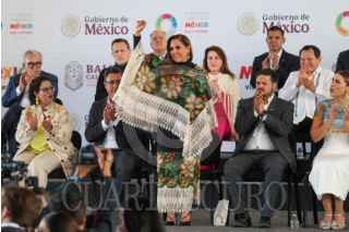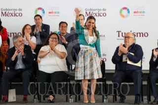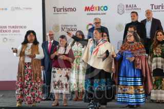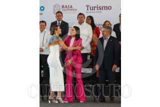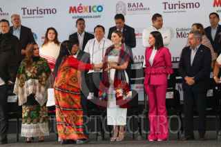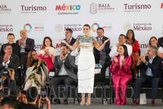 ROSARITO, BAJA CALIFORNIA, 28ABRIL2025.- Mara Lezama, gobernadora de Quintana Roo, durante el acto inaugural del Tianguis Turístico 2025. FOTO: MOISÉS PABLO/CUARTOSCURO.COM