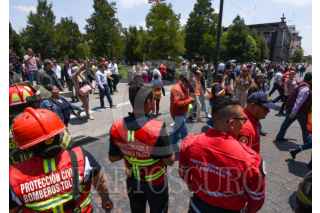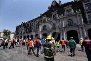 TOLUCA, ESTADO DE MÉXICO, 29ABRIL2025.- En la capital mexiquense se participó en el Primer Simulacro Nacional 2025, con hipótesis de un sismo de magnitud 8.1 con epicentro en Tehuantepec, Oaxaca, lo principales edificios como Palacio de Gobierno, Cámara de Diputados, Poder Judicial del Estado de México y el Ayuntamiento de Toluca, elementos de PC, bomberos y brigadas de PC realizaron el desalojo de edificios así como la revisión de las instalaciones. FOTO: CRISANTA ESPINOSA AGUILAR /CUARTOSCURO.COM