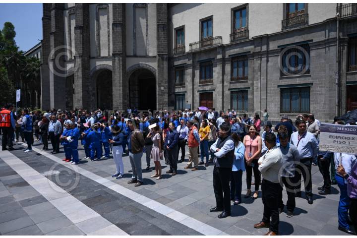 CIUDAD DE MÉXICO, 29ABRIL2025.- Al interior de Palacio Nacional trabajadores, representantes de los medios de comunicación, así cómo efectivos del ejército participaron en los ejercicios del Primero Simulacro Nacional. FOTO: PRESIDENCIA/CUARTOSCURO.COM