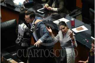CIUDAD DE MÉXICO, 29ABRIL2025.- Los senadores Ignacio Mier y Gerardo Fernández Noroña conversaron durante la Sesión Plenaria en el Senado de la República. FOTO: GRACIELA LÓPEZ/CUARTOSCURO.COM