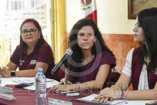 XALAPA, VERACRUZ, 29ABRIL2025.- La dirigente nacional de Morena Luisa María Alcalde acompañó a la candidata a la presidencia municipal de Xalapa, Daniela Griego, en la conferencia de prensa con motivo de su arranque de campaña. FOTO: YERANIA ROLÓN/CUARTOSCURO.COM