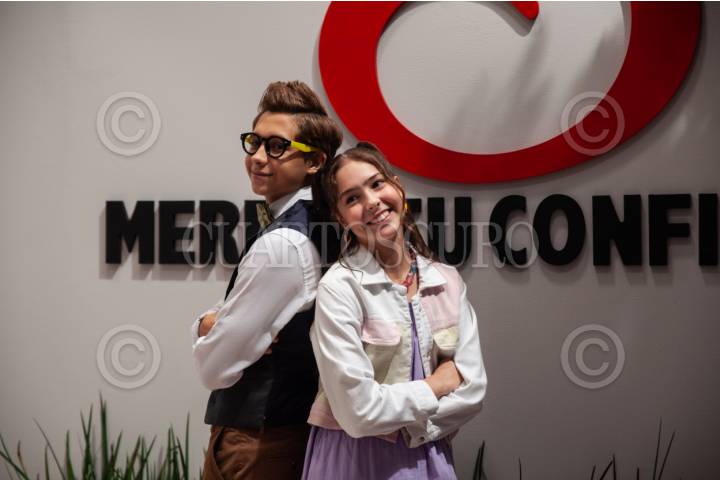 CIUDAD DE MÉXICO, 29ABRIL2025.- Tadeo Bonavides y Andrea Montalvo durante la presentación de la cuarta temporada de la serie de comedia ¿Tú crees? que se graba en los foros de Televisa. FOTO: ANDREA MURCIA /CUARTOSCURO.COM