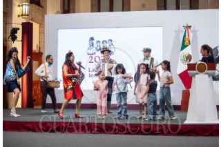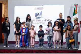 CIUDAD DE MÉXICO, 30ABRIL2025.- Claudia Sheinbaum Pardo, presidenta de México durante conferencia en Palacio Nacional donde esta vez se invitó a infancias hijos de reporteros a acompañarla. FOTO: ANDREA MURCIA /CUARTOSCURO.COM