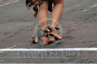 MÉXICO, D.F., 28OCTUBRE2007.- Esta mañana se realizó en las calles de Polanco un carrera en Tacones, en donde las participantes tuvieron que correr en zapatos de tacon. Al termino de la competencia, las participantes recibieron un masaje de pies. FOTO: RODOLFO ANGULO/CUARTOSCURO.COM