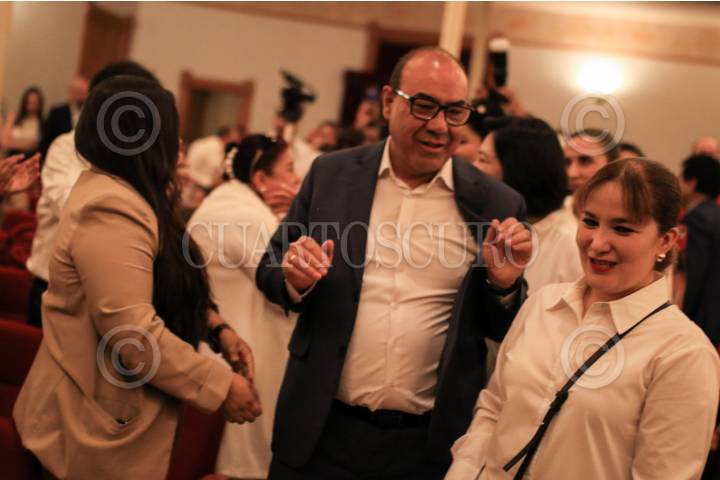 ZACATECAS, ZACATECAS, 30ABRIL2025.- Fue realizado el debate entre los candidatos por la Rectoría de la Universidad Autónoma de Zacatecas. En punto de las 10:30 hrs, la candidata Jenny Gonzalez Arenas, secretaria general de Sindicato del Personal Académico de la UAZ con licencia; y el candidato Ángel Román Gutierrez, secretario general de la UAZ con licencia; se presentaron en el Teatro Calderón, en donde la Comisión Electoral de la UAZ, organizó la actividad para el proceso electoral 2025. FOTO: ADOLFO VLADIMIR /CUARTOSCURO.COM