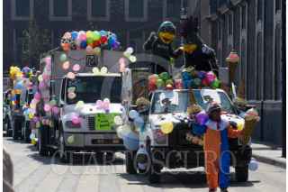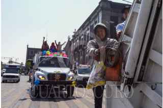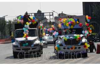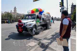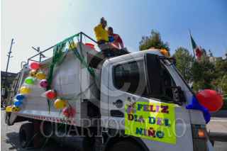 TOLUCA, ESTADO DE MÉXICO, 30ABRIL2025.- Trabajadores de limpieza y Servicios Públicos de Toluca recorrieron las calles de la capital mexiquense en sus camiones recolectores de basura Adornados con globos y diversos motivos en el marco de la celebración del Día del Niño, regalaron dulces y pelotitas, cada año salen a realizar este recorrido y con recursos propios se organizan para dar un presente a los pequeños. FOTO: CRISANTA ESPINOSA AGUILAR/CUARTOSCURO.COM