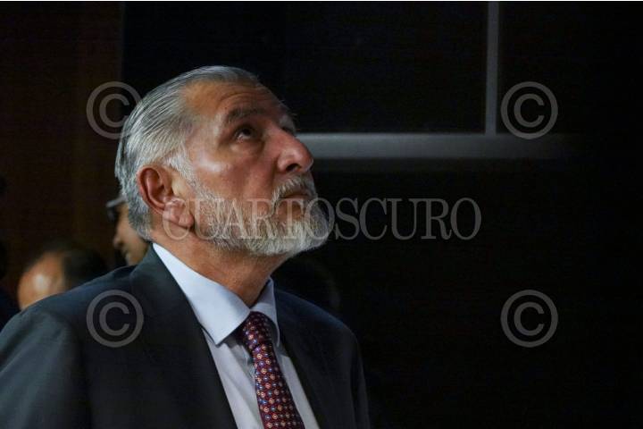 CIUDAD DE MÉXICO, 30ABRIL2025.- Adán Augusto López, coordinador de la bancada de Morena en el Senado y presidente de la Jucopo, espera un elevador para incorporarse a la sesión ordinaria en la que se aprobó la Estrategia Nacional de Seguridad Pública 2024-2030. FOTO: GALO CAÑAS/CUARTOSCURO.COM
