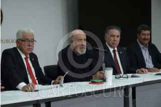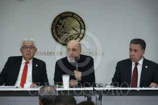 CIUDAD DE MÉXICO, 30ABRIL2025.- Los senadores Alejandro Esquer, José Antonio Cruz Álvarez, Enrique Inzunza Y Javier Corral durante la conferencia en el Senado de la República en donde dieron detalles respecto a las modificaciones de la Ley Telecomunicaciones, así como designación de fechas para los conversatorios al respectos FOTO: GALO CAÑAS/CUARTOSCURO.COM
