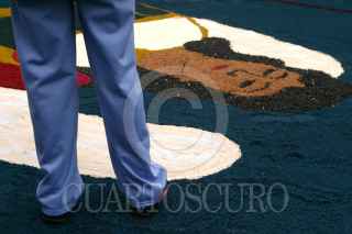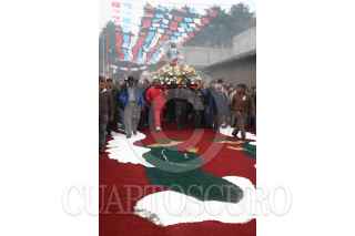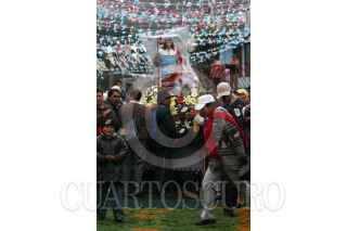 SAN RAFAEL EDOMEX., 28OCTUBRE2007.- Miles de personas asistierón a los festejos de San Rafael, lugar donde aun se conserva la tradición de tapizar las calles y casas con aserrin pintado, toritos pirotecnicos, flores, musica y papel picado para celebrar los festejos del santo San Rafael Arcangel, mismo que es llevado en procesión por todas las calles y barrios del municipio. FOTO: SAÚL LÓPEZ/CUARTOSCURO.COM