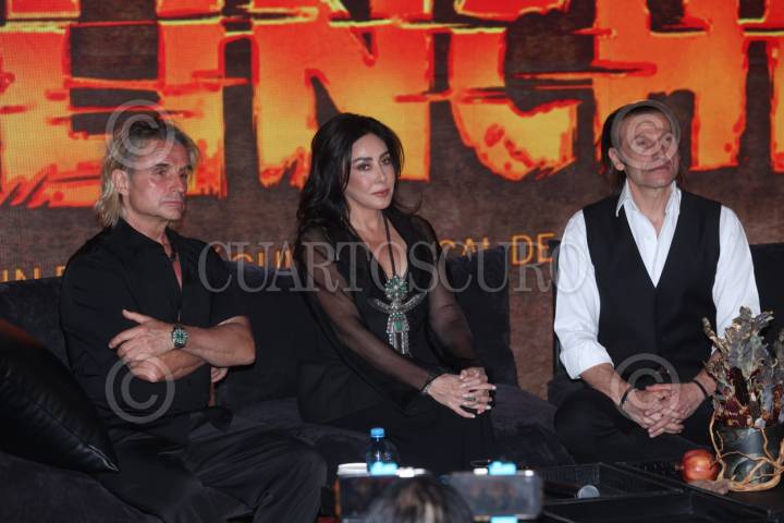 CIUDAD DE MÉXICO, 30ABRIL2025. Nacho Cano, María Laura Marina de Salinas y David Hatchwell durante la conferencia de prensa donde se presentó el elenco del espectáculo musical “Malinche”, en el Frontón México. FOTO: EDGAR NEGRETE LIRA/CUARTOSCURO.COM