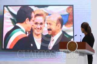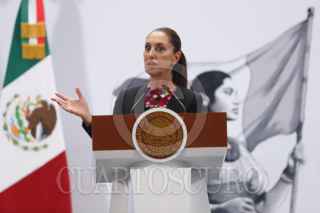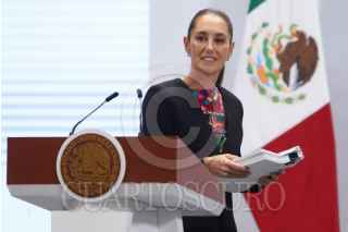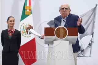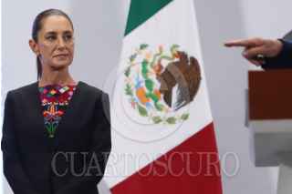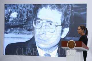 CIUDAD DE MÉXICO, 01MAYO2025.- Claudia Sheinbaum, presidenta de México, recibe del titular de la Unidad de Inteligencia Financiera, Pablo Gómez, el documento que incluye la auditoría del Fobaproa. FOTO: DANIEL AUGUSTO/ CUARTOSCURO.COM