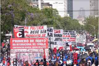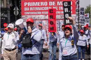 CIUDAD DE MÉXICO, 01MAYO2025.- En el marco Día Internacional del Día del Trabajo, integrantes de diversos sindicatos marcharon para exigir sus derechos en laborales en un protesta que inicio en Avenida Juárez y termino en el Zócalo capitalino. FOTO: GRACIELA LÓPEZ/CUARTOSCURO.COM