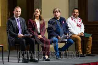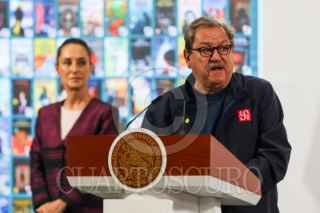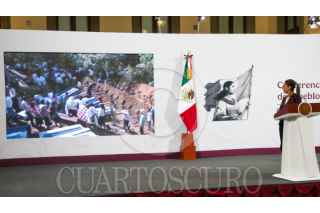 CIUDAD DE MÉXICO. 02MAYO2025.- mañanera del pueblo encabezada por la Presidenta Claudia Sheinbaum Pardo en el salón Tesorería del Palacio Nacional. anuncio de inversiones de Unilever así como la presencia del director del Fondo de Cultura Económica, Paco Ignacio Taibo II. FOTO: VICTORIA VALTIERRA/CUARTOSCURO.COM