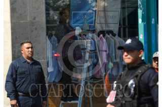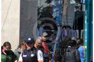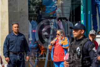 TOLUCA, ESTADO DE MÉXICO, 02MAYO2025.- Una mujer limpia vidrios desde el interior de un negocio en la capital mexiquense mientras la gente pasa por la calle. FOTO: CRISANTA ESPINOSA AGUILAR /CUARTOSCURO.COM