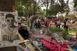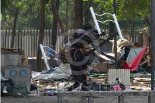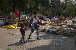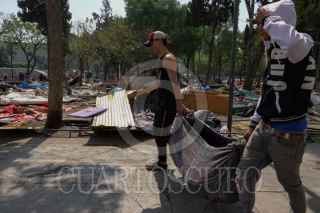 CIUDAD DE MÉXICO 02MAYO2025.-Migrantes que mantenian un campamento donde habitaban desde hace meces, fueron desalojados durante las primeras horas de este viernes. Al momento no se ha informado si serán reubicados en algún otro punto. FOTO: ROGELIO MORALES CUARTOSCURO.COM