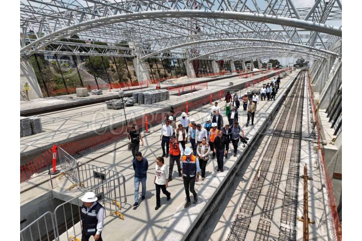 CIUDAD DE MÉXICO, 02MAYO2025.- Claudia Sheinbaum, presidenta de México, junto a Clara Brugada, jefa de Gobierno, y Delfina Gómez, gobernadora del Estado de México, encabezó el recorrido de supervisión de obras de la terminal Observatorio, que albergará la conexión de la nuevalínea 1 del metro, del tren El Insurgente, y de la línea 13 del metro. FOTO: PRESIDENCIA/CUARTOSCURO.COM