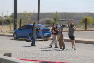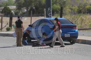 CIUDAD JUÁREZ, CHIHUAHUA, 02MAYO2025.- Esta mañana en Ciudad Juárez, un hombre de aproximadamente 30 años fue asesinado de seis balazos cuando llegaba a su lugar de trabajo, una empresa de pisos y azulejos ubicada en el cruce de Paseo de la Victoria y Camino Viejo a la Rosita. La víctima, quien se desempeñaba como montacarguista, fue atacada mientras descendía de un vehículo azul con placas de Texas. El agresor huyó a pie por un terreno baldío y no ha sido detenido. FOTO: CARLOS SÁNCHEZ COLUNGA/CUARTOSCURO.COM