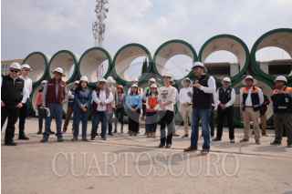 CHALCO, ESTADO DE MÉXICO, 02MAYO2025.- Claudia Shienbaum, presidenta de México, encabezó la supervisión de obras del del colector de Chalco, que buscará reducir las inundaciones en dicha entidad. FOTO: PRESIDENCIA/CUARTOSCURO.COM