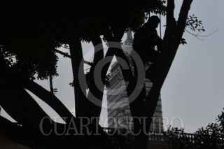 CIUDAD DE MÉXICO, 03MAYO2025.- Un trabajador de obras poda un árbol al costado del Museo Nacional de Arte (Munal).