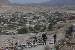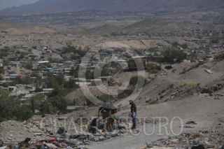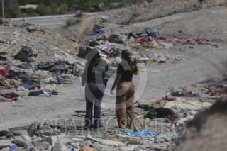 CIUDAD JUÁREZ, CHIHUAHUA, 03MAYO2025.- En un camino de terracería convertido en tiradero clandestino, detrás del panteón Jardines del Recuerdo en Ciudad Juárez, la escena del crimen se mezclaba con montones de basura: un oso de peluche gigante, sentado en un sillón abandonado, destacaba en primer plano, mientras a unos metros yacía el cuerpo de un hombre con un tiro de gracia, rodeado de escombros. FOTO: CARLOS SÁNCHEZ COLUNGA/CUARTOSCURO.COM