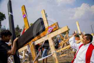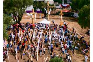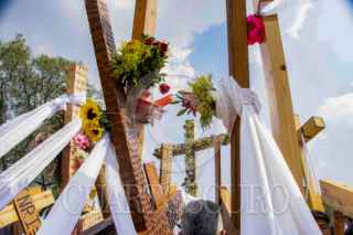 CIUDAD DE MÉXICO, 03MAYO2025.- En el marco de la celebración del Día de la Santa Cruz, fieles de Iztapalapa acudieron al Cerro de la Estrella para bendecir sus cruces. FOTO: CUARTOSCURO.COM