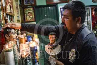 CULIACÁN, SINALOA, 03MAYO2025.- A pesar de la oleada de violencia que atraviesa la localidad, devotos del santo popular, Jesús Malverde, celebran en la Capilla de Jesús Malverde. FOTO: PEDRO ANZA /CUARTOSCURO.COM