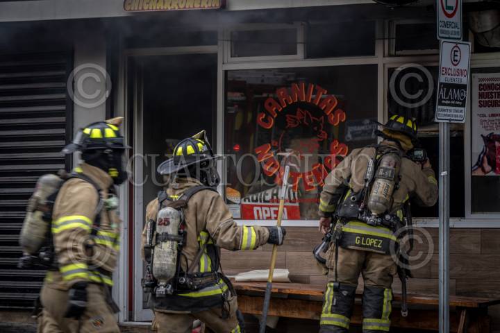 TIJUANA, BAJA CALIFORNIA 04MAYO2025.- En medio del despliegue de mangueras y el sonido de las sirenas, una escena capturó la atención en la calle 12, cerca de la avenida Pino Suárez: Giovanni, el dueño de la chicharronería Sancochi, abrazaba con fuerza a uno de sus empleados. Mientras los bomberos trabajaban arduamente para sofocar las llamas que emergían del local, el gesto del propietario transmitía un mensaje claro: la seguridad y el bienestar de su equipo eran su principal prioridad. El incidente, reportado al número de emergencias alrededor de las 8:15 de la mañana, movilizó rápidamente a elementos del cuerpo de bomberos de la ciudad, quienes al llegar encontraron humo negro saliendo del interior del establecimiento. Tras una rápida intervención, lograron controlar y extinguir el fuego, evitando que se extendiera a propiedades vecinas. Con una mezcla de alivio y determinación en su rostro, Giovanni se dirigió a los presentes. "Es parte de lo que puede pasar en una cocina", comentó con serenidad. "Tenemos extintores y, gracias a Dios y al apoyo de los bomberos y de mi equipo, se logró controlar. Agradezco muchísimo a los bomberos por su rápido servicio". Pese a la interrupción obligada de la operación, el dueño de Sancochi se mostró optimista y enfocado en el futuro. "Gracias a Dios los daños no fueron tan agresivos, fueron llamaradas, pero al final tenemos que parar la operación por un tiempo. Sin embargo, lo más importante es que todos mis trabajadores están bien, y eso es lo que realmente me da tranquilidad. Pronto estaremos de regreso, listos para seguir ofreciendo nuestros deliciosos chicharrones a nuestros clientes en la colonia Libertad. Las causas del incendio aún están bajo investigación por parte de las autoridades competentes. Según informó Noe Cruz, supervisor de Bomberos Tijuana, tras recibir el reporte del incendio de un local, la primera unidad que arribó al lugar confirmó la presencia de humo, por lo que se procedió a sofocar las llamas y a iniciar las labores de investigación correspondientes. Tal como señaló el supervisor: “se recibió el reporte del incendio de un local; al llegar la primera unidad confirma el incendio, que está saliendo humo del lugar, se procede a sofocar y a hacer las tareas de trabajo de investigación, teniendo un total de diez bomberos y dos máquinas de bomberos”. En las tareas participaron un total de diez bomberos y dos máquinas de bomberos.FOTO: OMAR MARTÍNEZ / CUARTOSCURO.COM