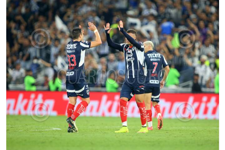 GUADALUPE, NUEVO LEÓN, 04MAYO2025.- Jugadores de los Rayados del Monterrey, festejan el gol ante Pumas, en el estadio BBVA, partido correspondiente al Play In 2 de la Clausura 2025. Marcador Final: Monterrey: 2 - Pumas: 0. FOTO: GABRIELA PÉREZ MONTIEL / CUARTOSCURO.COM