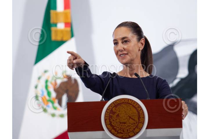 CIUDAD DE MÉXICO, 05MAYO2025.- Claudia Sheinbaum Pardo, presidenta de México acompañada de durante conferencia matutina en en Palacio Nacional. FOTO: ANDREA MURCIA /CUARTOSCURO.COM
