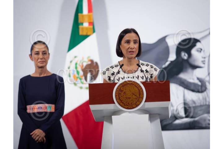CIUDAD DE MÉXICO, 05MAYO2025.- Luz Elena González Escobar, secretaria de Energía durante conferencia matutina en en Palacio Nacional. FOTO: ANDREA MURCIA /CUARTOSCURO.COM
