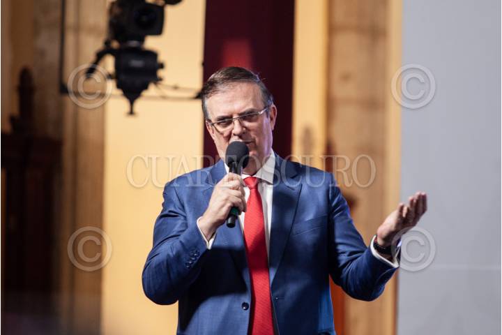 CIUDAD DE MÉXICO, 05MAYO2025.- Marcelo Ebrard Casaubón, secretario de Economía durante conferencia matutina en en Palacio Nacional. FOTO: ANDREA MURCIA /CUARTOSCURO.COM