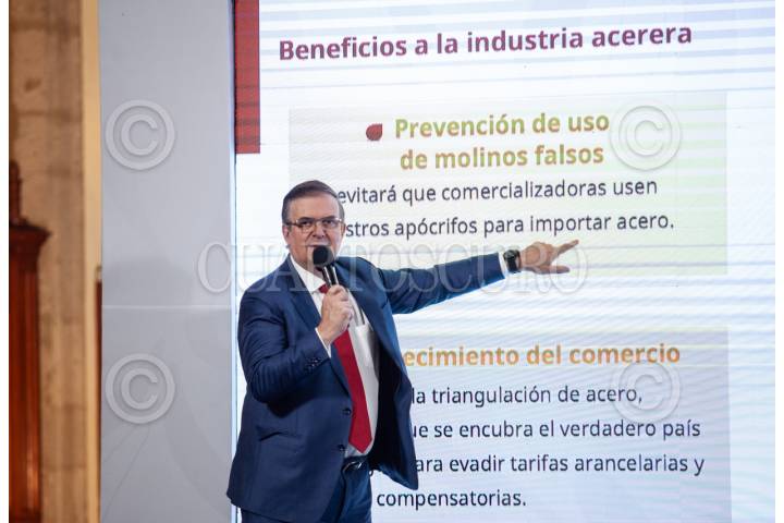 CIUDAD DE MÉXICO, 05MAYO2025.- Marcelo Ebrard Casaubón, secretario de Economía durante conferencia matutina en en Palacio Nacional. FOTO: ANDREA MURCIA /CUARTOSCURO.COM