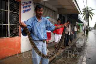 VILLAHERMOSA, TABASCO, 29OCTUBRE2007.- Un habitante de la populosa colonia Gaviotas pudo haber sido mordido por esta peligrosa víbora cuando pasaba por la zona que se desborda del río Grijalva. FOTO: MARCO POLO GUZMÁN HERNÁNDEZ/CUARTOSCURO.COM