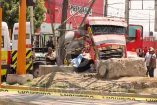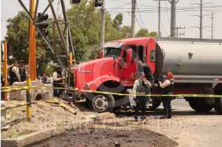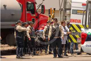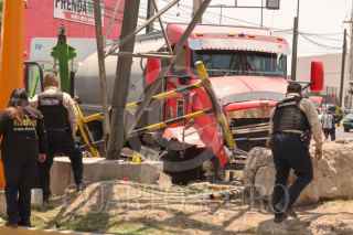 TECÁMAC, ESTADO DE MÉXICO, 06MAYO2025.- Un pipa repartidora de agua arrolló a un motociclista dejandolo prensado contra la base de una torre de luz, en la avenida mexiquense, en la segunda sección de Héroes de Tecamac. FOTO: ROGELIO MORALES/CUARTOSCURO.COM