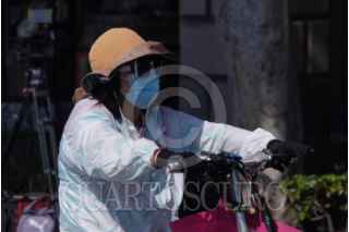 CIUDAD DE MÉXICO, 07MAYO2025.- Una mujer se cubre de los fuertes rayos del sol con una bolsa mientras camina acompañada por las calles del Centro Histórico. La Secretaría de Gestión Integral de Riesgos informo que hasta el jueves 8 habrá onda de calor en la que se presentaran temperaturas de 30 a 32°C. FOTO: GRACIELA LÓPEZ/CUARTOSCURO.COM